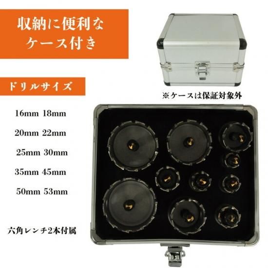 ホールソーセット 木工用10pcs 収納ケース付 19mm〜127mm